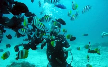 Кроме этого у туриста на пляже Hinugtan есть возможность погрузиться в голубую пучину с аквалангом и передать привет обитателям морских глубин, которые в этом месте Филиппин редко видят человека и поэтому позволяют рассмотреть себя во всей красе, не пугаясь посторонних в своём подводном царстве.